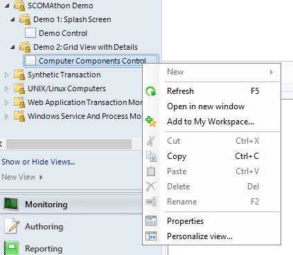 Now, let’s create a bit more sophisticated component featuring grid view for objects and object detail view. The grid control will show a list of all Windows Computers in SCOM. At the same time, the detailed view, attached to the grid, will show logical disks hosted at the selected computer object and their sizes.